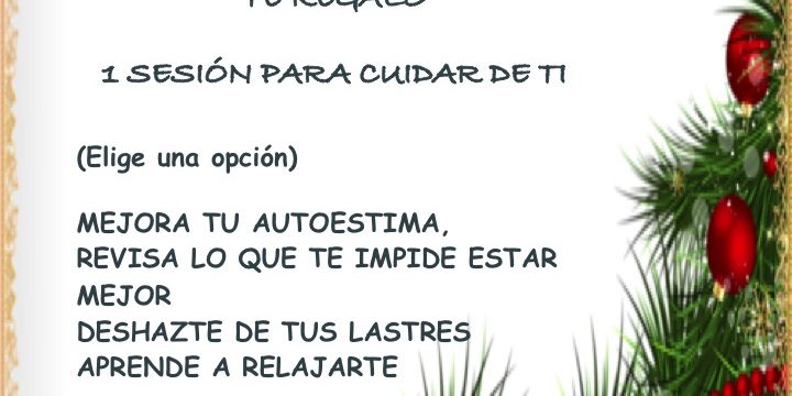 Dic182014CoachingInformación generalPsicología Puede ser una sesión, tres, seis, ….. depende de cuánto bienestar quieres regalar!!! Consulta precios y opciones. Categorías: Coaching, Información general, PsicologíaPor admin18 diciembre, 2014Deja un comentarioPost relacionadosAmaxofobia o miedo a conducir23 marzo, 2021Relaciones de pareja: ¿qué sucede cuando la chica tiene más experiencia que el chico?9 julio, 2019“Las personas no se van de las empresas, sino de quienes les tratan mal en ellas”29 marzo, 2019El desafío adolescente11 diciembre, 2018Con casi 20 años, quieres que tenga seguridad, autoestima, capacidad de tomar decisiones, y que haga lo que tú le dices, ¿no es algo incoherente?6 abril, 2018«No entiendo las decisiones de mi pareja»25 febrero, 2018